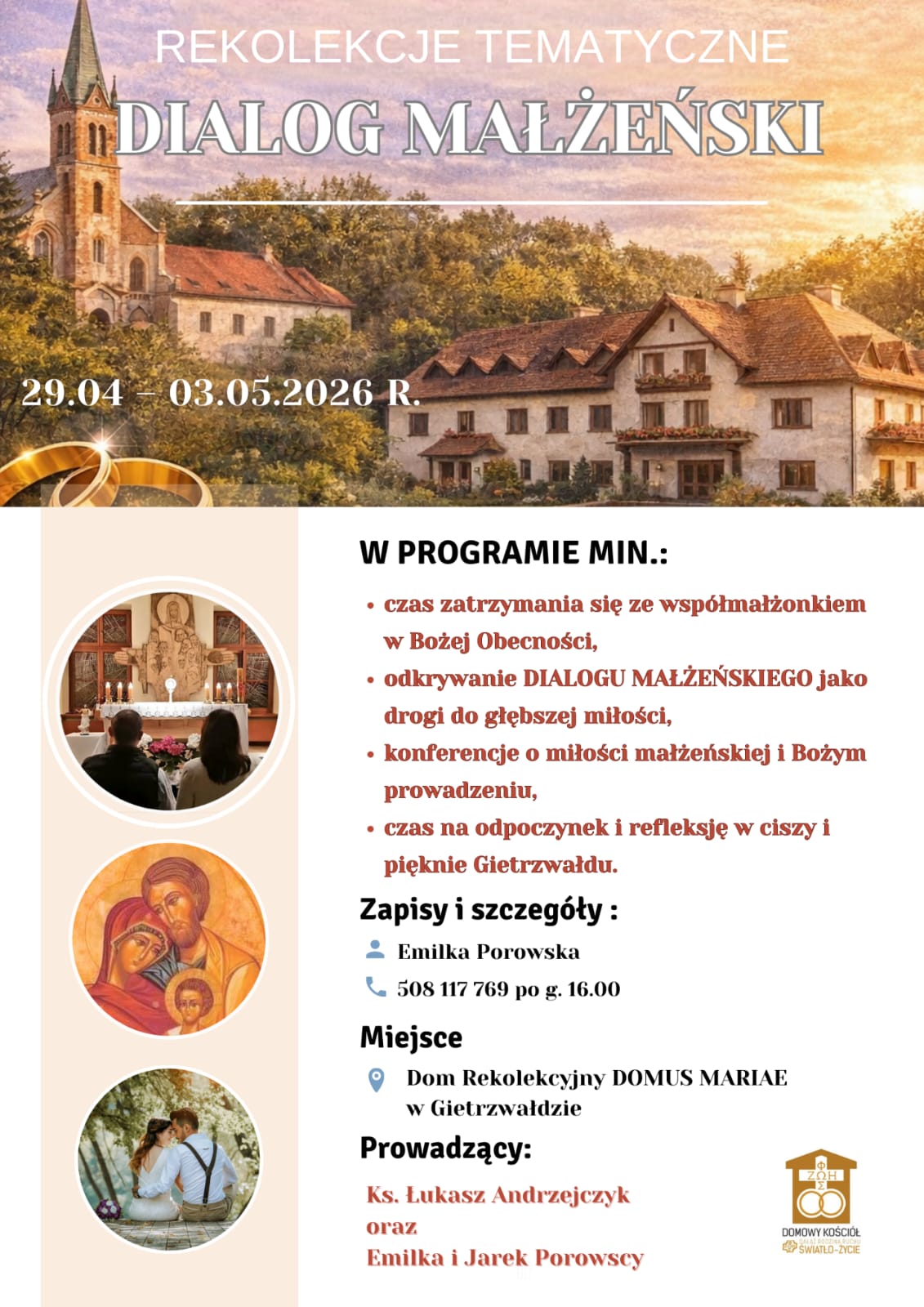 - Prowadzący: ks. Łukasz Andrzejczyk oraz Emilka i Jarek Porowscy